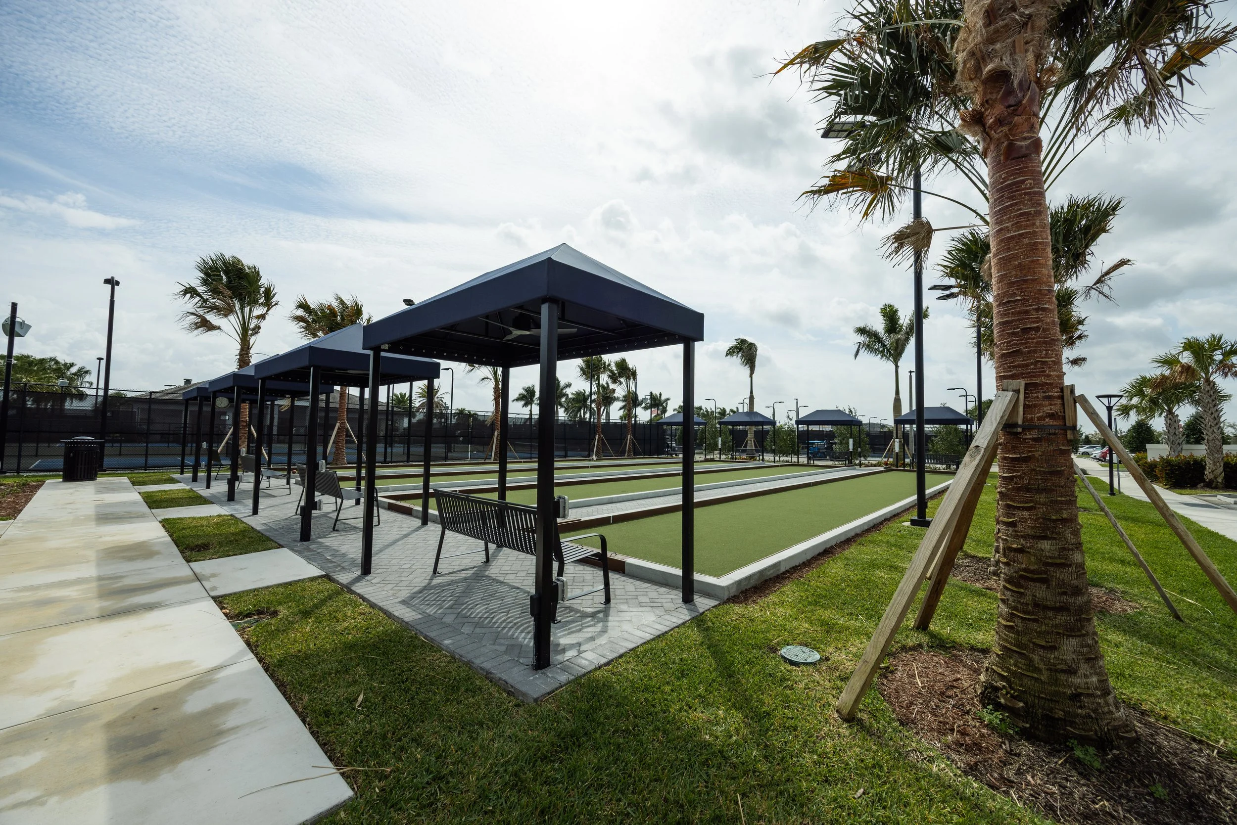 Additionally built 4 FDC hydro and 4 synthetic turf bocce courts, all with perimeter concrete curb and interior composite wood border (ADA accessible)